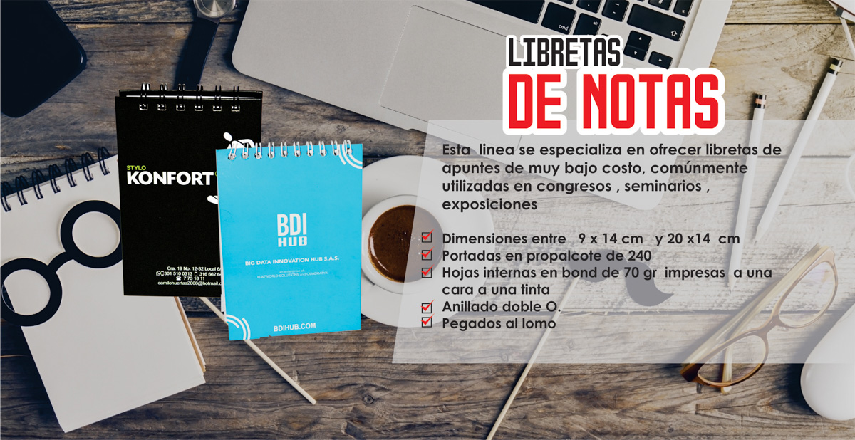 Personaliza los almanaques y cuadernos con tu logo y mensaje.